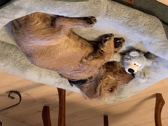 mit einem ihrer großen Airedale - Terrier Freunden und Beschützer. Vertraut und geliebt....
